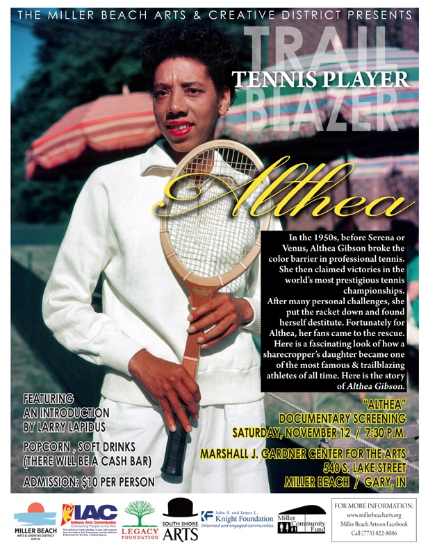 “Althea,” a documentary celebrating the trailblazing athlete, will screen Saturday, November 12 at 7:30 p.m. at the Marshall J. Gardner Center for the Arts in the Miller Beach section of Gary.