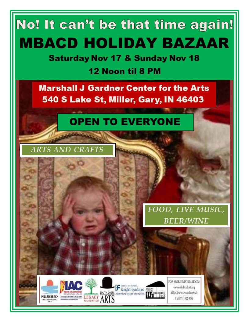 Over 20 artists and crafts people will be selling handmade or vintage items in the warm environs of the Marshall J. Gardner Center for the Arts. Start (or finish) your holiday gift shopping, or add a beautiful necklace or piece of art to your own collection. Hungry? We’ve got you covered. Our Cafe Corner will have hot food to warm you up thanks to House of Herbs, live music, and a cash bar selling beer and wine. So grab a friend, settle in, and make a day out of it! Art, food, wine and friends – a great start to the holiday season.