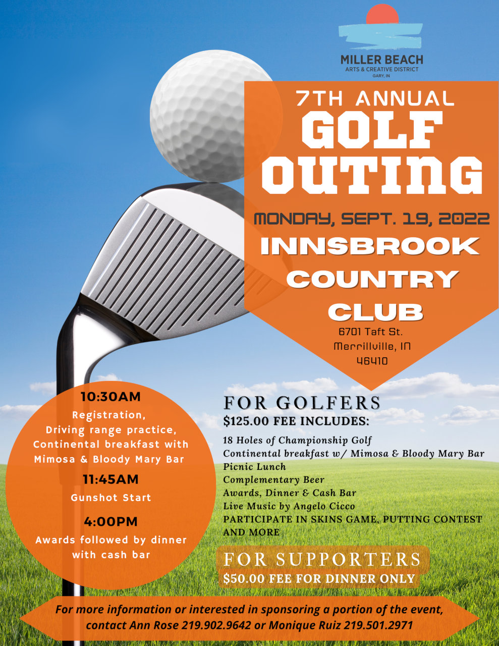 You are invited to the Miller Beach Arts & Creative District’s 7^th annual Golf Outing, at Innsbrook Country Club.