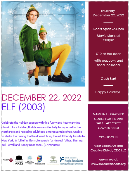 $10 at the door includes a soft drink and popcorn and benefits the Miller Beach Arts & Creative District