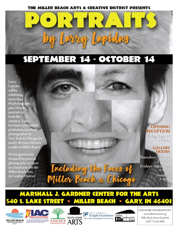 Please join us for “Larry Lapidus Portrait Exhibit”, which Includes the Faces of Miller Beach & Chicago. The exhibit runs through November 11th, 2018.