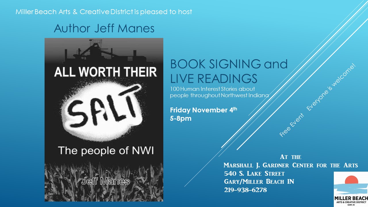 Celebrate First Fridays at the MJGC with NWI’s favorite author and all-around salt of the earth guy Jeff Manes. Jeff will be doing live readings of excerpts of his book “All Worth Their Salt” with some of his friends and signing his latest book at the Marshall J. Gardner Center for the Arts on Friday, November 4 from 5-8pm.