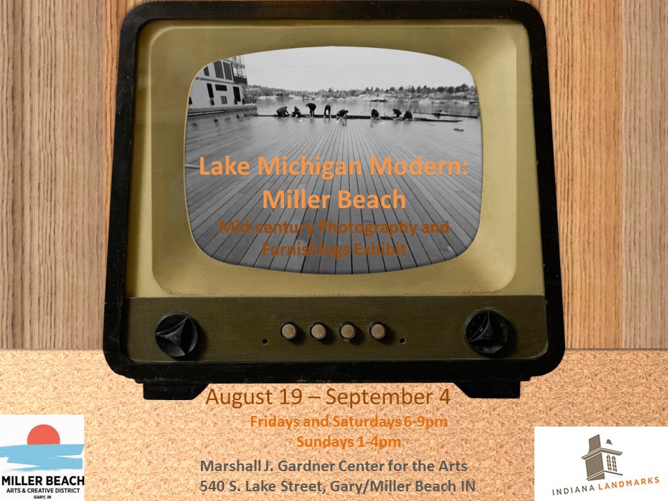 Join us as we celebrate the eclectic architecture in Miller Beach. This exhibit accompanies the home tour that was held August 20th in collaboration with Indiana Landmarks and brings in the elements of photography and furnishings of the mid-century era.