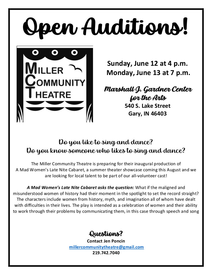 Do you like to sing and dance? Do you know someone who likes to sing and dance? The Miller Community Theatre is preparing for their inaugural production of A Mad Women’s Late Nite Cabaret, a summer theater showcase coming this August, and we are looking for local talent to be part of our all-volunteer cast!