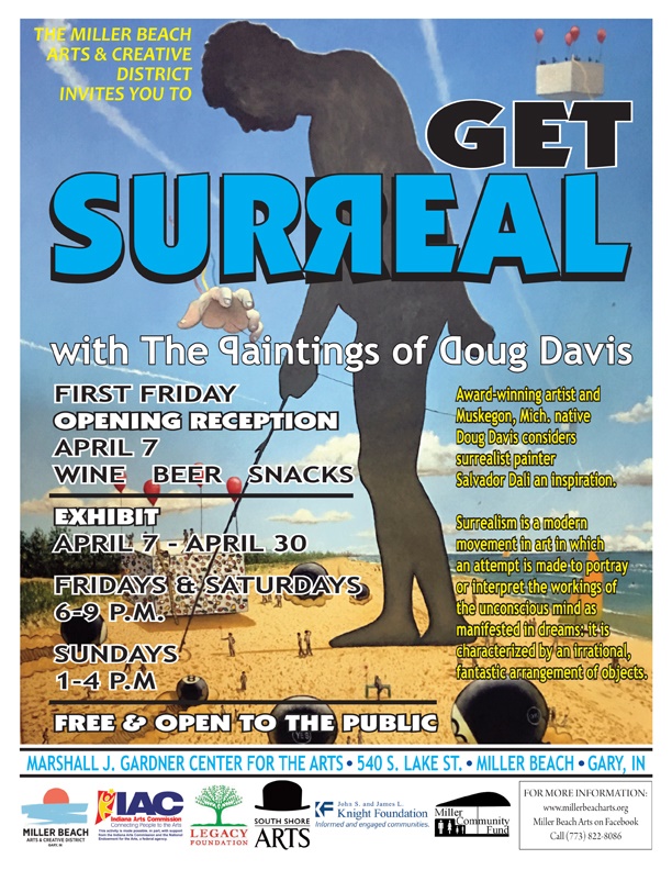 Sponsored by the Miller Beach Arts & Creative District, Muskegon, MI native Doug Davis’ paintings will be available for viewing in the gallery, starting with an opening reception as part of First Fridays on Lake Street Friday, April 7th from 6-9pm.